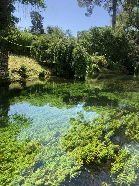 [...] We are talking about the medieval city of Ninfa, whose stunning ruins, within the snaking of the river that goes by this same vague name, are truly an extraterritorial and extratemporal place. It seems it is timeless, because even the wonderful and varied vegetation (which the Caetani family, with most loving care, intruded among the ruins) seems, rather than layered over the years, settled on a happy edge. In this way every season, even the most rigid, has its flowers, its herbs, its scents. Only in certain paintings, such as Woburn Abbey, by Canaletto when he went to England, can one breathe such a zephyr. Coming from the breath of Fairies or Nymphs, it reaches the groves of orange trees, the masses of corymbs black as bronze to the magnolias with flowers as small as gardenias. Yet it is not that Ninfa is mannered(manierata); the art is hidden, the meadows blossom as it is by chance, and groups of trees seem to have been sown according to the will of the birds and the winds, randomly depositing the seeds. There is no park, no garden, nor villa that has such both secret and visible charms, such greater level of spontaneity obtained with the most hidden artifice. It will be said, "beati possidentes” (god bless who owns it) ; but the “beati possidentes” did not make it a "hortus conclusus”. There is no doubt that this illustrious papal family (Caetani) has made for themselves, through Ninfa, a living monument to which they could bind such an ancient name for all posterity, and not only for scholars. [...] (Cesare Brandi)