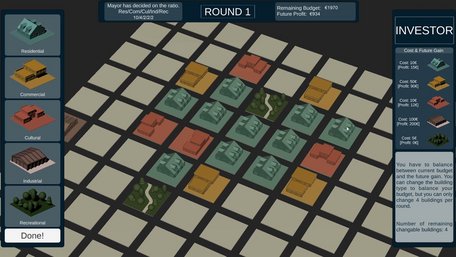 Urban development literacy is the foundation for active citizen engagement. “Urban Diplomacy” conveys information about negotiation, collaboration, and actors of urban development through a computer role-playing game. During the game, different parties (the municipality, planning authorities, developers, and the local community) negotiate a future planning measure. Depending on individual roles, players can influence the shared plan by: defining zoning laws and use ratios, situating buildings and infrastructures, financing or rejecting projects, voting, and protesting. Thus, Urban Diplomacy provides a playful approach to urban planning controversies.