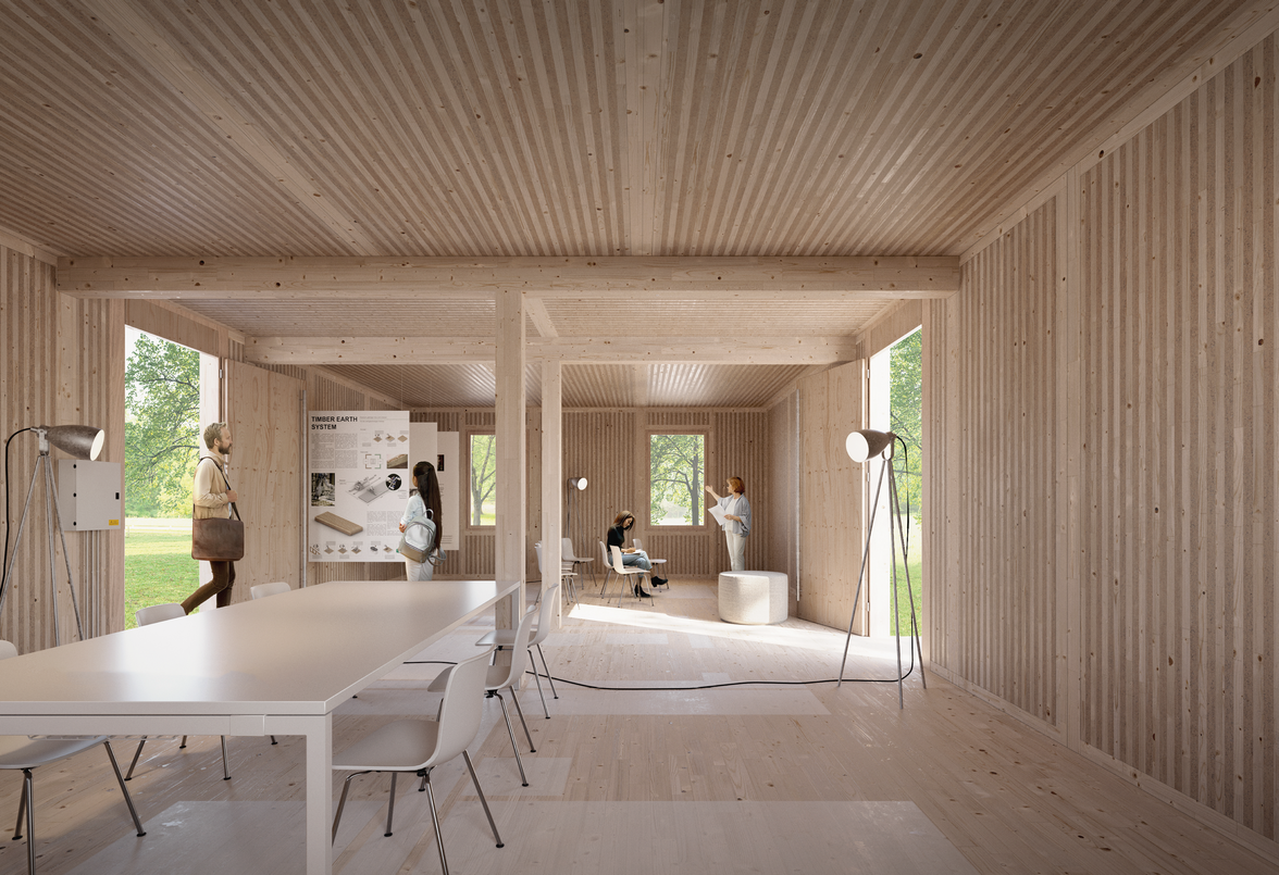 The focus is on developing an architectural concept that integrates space, use, and atmosphere and is worked out in structural detail. The pavilion will be constructed entirely of wood and clay, based on the Timber Earth System of the research project. Particular attention will be paid to the wall and ceiling structures as well as the design of the joints and connections (wall-wall, ceiling-ceiling, wall-ceiling).