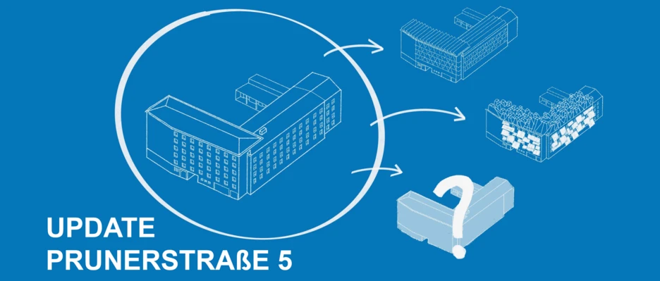Das Hauptziel des Projekts „Update Prunerstraße 5“ ist es, einen ergebnisoffenen Prozess zu initiieren, aus dem ein Raum- und Funktionsprogramm entsteht, das ein resilientes, klimaneutrales und hybrides Gebäude ermöglicht. Dabei soll gezeigt werden, wie Bestandsgebäude durch progressive Sanierungs- und Umnutzungskonzepte sowie durch das Hinterfragen bestehender Standards an die heutigen Anforderungen von Klimaneutralität und Nachhaltigkeit angepasst werden