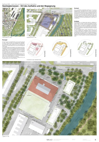 The urban framework conditions surrounding the plaza “at the Kulturkraftwerk” have undergone fundamental changes, thereby altering the specific spatial requirements. The heterogeneous open space structure is evolving into a place of arrival and stay for visitors of the Philharmonie and City Library, as well as for students and local residents. In the future, the entire operational site is intended to be developed into a mixed-use quarter combining culture, commerce, and residential uses.