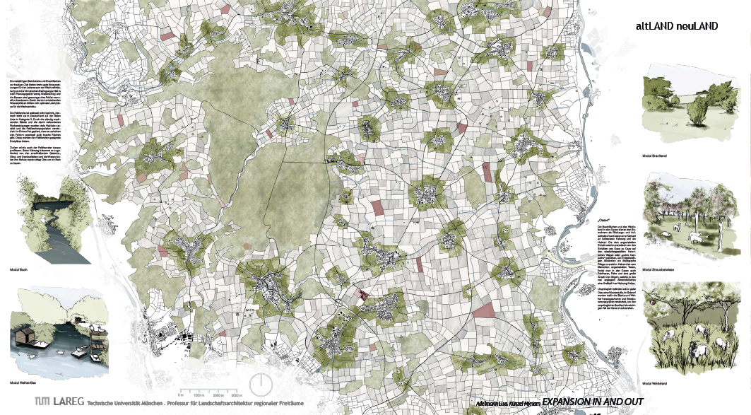 A large part of the population lives in suburban areas, the in-between city (SIEVERTS 1997). In growing regions such as Munich and Berlin, half of the increase in population is accounted for by the peripheries close to the big cities. For a qualification of suburban spaces, crystallisation cores are needed that can be charged as identity-creating, significant places and can be qualified as condensed or also emphatically open centres. Where urban cores and "primary elements" (ROSSI 1973) are missing, such structural elements can be relict elements of the natural or cultural landscape, such as bodies of water, gardens, parks, village centres, paths or field structures.