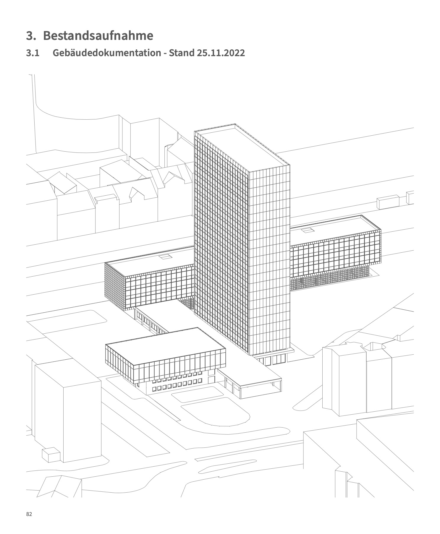 Der aktuelle Zustand des Gebäudes ist vor allem auf eine fehlende Pflege, ein fehlendes Schützen vor Alterungsprozessen und ausstehende Reparaturen der Schäden zurückzuführen. Nichtsdestotrotz stellte sich in den Gutachten der Machbarkeitsstudie heraus, dass es für einen Eingriff nicht zu spät war. Die statischen Mängel hätten über Verstärkungen in den Griff bekommen werden können. Diese waren im Grunde bereits nach dem Kauf des Gebäudes 1997 durch ein Ingenieurbüro vorgeschlagen aber nie umgesetzt worden. Auch die Sanierung der Schadstoffe wäre möglich, vor allem da hier schon einmal eine Sanierung stattgefunden hat. Die Option einer behutsamen Sanierung, die sich gezielt mit den Problemstellen des Bauwerks beschäftigt und die Werte des Gebäudeensembles berücksichtigt, wurde nie detailliert ausgearbeitet. Aufgrund der Vorgabe einer kompletten Schadstoffsanierung und dem Durchsetzen der Musterhochhausrichtlinie kam sie für das Landratsamt nicht in Betracht. Hinzu kommt, dass das Grundstück das einzige Eigentum des Landkreises in Karlsruhe ist und der Neubau, der die doppelte Bruttogeschossfläche aufweisen wird, einen wirtschaftlichen Reiz darstellt.