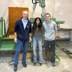 On November 24, 2025, Jakob Kellnberger and Christian Rauch, together with master’s student Atikah Hanif Baig, visited the TUM Wood Research Laboratory, headed by Prof. Dr. Jan-Willem G. van de Kuilen. In future collaboration, mechanical tests on baubotanical connections will be carried out here as part of the interdisciplinary seminar “Design Build Grow 4” in cooperation with the Professorship of Green Technologies in Landscape Architecture. The goal is to realize a structure designed and built by students of architecture, landscape architecture and civil engineering, in which living trees are utilized as the load-bearing structure.