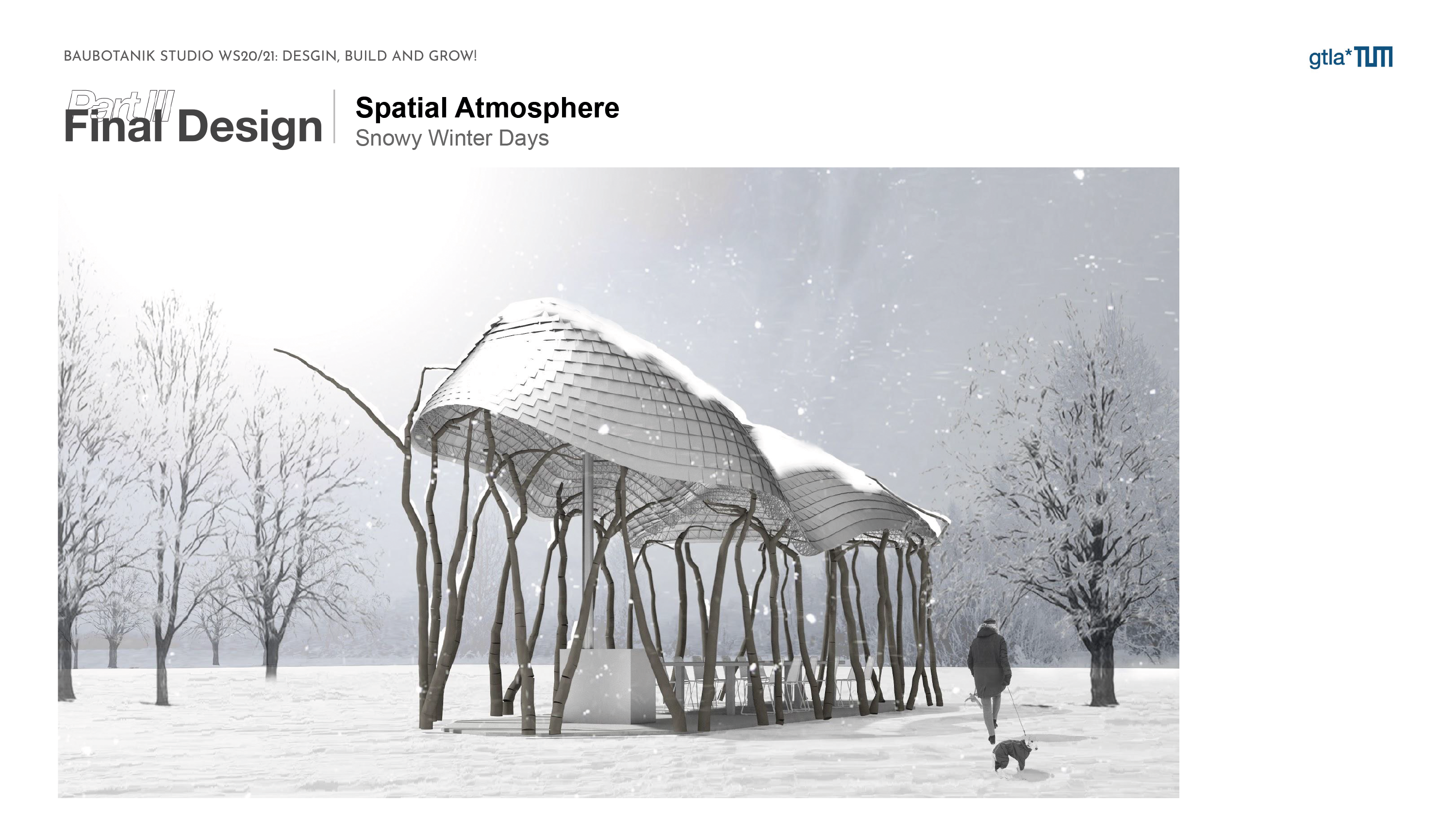 Wie wird sich der Standort mit dem Wachstum der Bäume verändern? Wie können Entwürfe dies zeigen? Wie kann sich der Entwurf an Veränderungen der strukturellen Form, der Ästhetik und des Klimas anpassen? Das sind Fragen mit welchen die Studierenden in diesem Semester umgehen mussten.