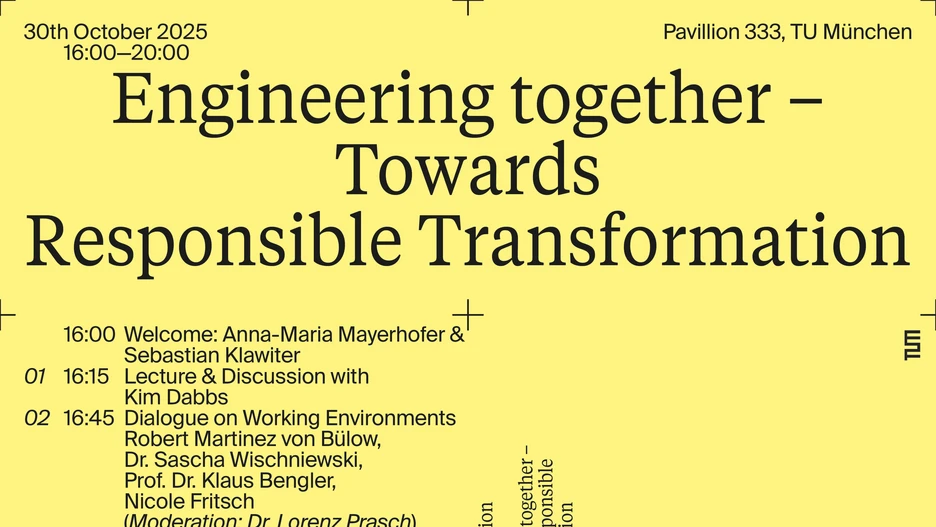 In summer 2025, the TUM School of Engineering and Design piloted new teaching formats to highlight the social role and contributions of engineers in transformation processes. Three interdisciplinary summer schools examined transformation from different perspectives: belonging (Prof. Annette Diefenthaler), working environments (Prof. Klaus Bengler), and built structures (Prof. Mark Michaeli). The diverse results are presented at a public closing event at Pavilion 333 in Munich – featuring an exhibition of the projects, guest lectures, and discursive formats.