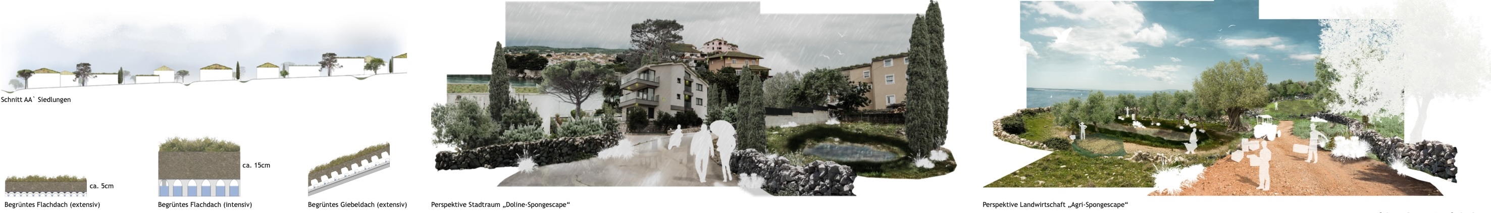 „Water-(sponge)-scape – Ein Update des Wasserspeichers für Krk“ widmet sich den Herausforderungen des Klimawandels auf der kroatischen Insel Krk. Der Fokus liegt hierbei auf Extremwetterereignissen wie langen Trockenperioden, Starkregen und deren Konsequenzen wie Überflutungen und Ernteverluste. Ziel der Arbeit ist es, innovative Landschaftsstrategien zu entwickeln, welche die Widerstandsfähigkeit der Insel gegenüber diesen klimatischen Veränderungen erhöhen. Können Wege gefunden werden, Niederschlagswasser im Abfluss zu verzögern, zu puffern und im Anschluss zu speichern, um ein flächendeckendes Wasserspeicher- und Abgabenetz aufzubauen? Welche natürlichen Strukturen der Insel Krk können dafür genutzt werden, um den Wasserhaushalt zu stabilisieren und damit auf verschiedene Klimaszenarien reagieren zu können?