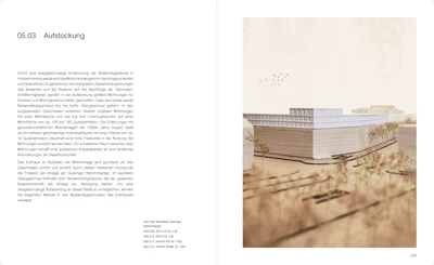 Die Anforderungen der Bewohnerschaft an ein Gebäude verändern sich im zeitlichen Kontext immer wieder. Um langfristig bewohnt, wertgeschätzt und damit erhalten zu bleiben, sind regelmäßige Anpassungen und Modernisierungsmaßnahmen unerlässlich. Der Entwurf zeigt anhand einer zwischen 1938 und 1952 entstandenen Wohnanlage, wie mit gezielten Umbaumaßnahmen zum langfristigen Erhalt der Bestandsgebäude beigetragen werden kann. Vorhandene bauliche und sozialstrukturelle Qualitäten sollen gestärkt und ergänzt werden. Neben der energetischen Ertüchtigung der Gebäudehülle wird eine Erweiterung und Diversifizierung des Wohnraumangebots in der Anlage sowie eine qualitative Aufwertung der Bestandswohnungen angestrebt. Die baulichen Maßnahmen sollen in bewohntem Zustand erfolgen, um Verdrängungsprozesse zu vermeiden.