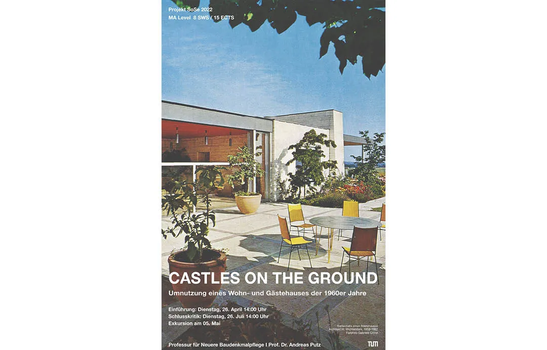 Das großzügigen Wohn- und Gästehauses in Gundelfingen an der Donau von 1961 (Architekt Wilhelm Wichtendahl) soll daraufhin untersucht werden, ob und wie es sich für eine neue öffentliche Nutzung umbauen lässt, um den vorhandenen Bau und seine Qualitäten in die Zukunft zu führen. Allgemein ist 60 Jahre nach Erstellung der Umgang mit dem großen Bestand an EFH der Nachkriegszeit in Westeuropa – meist eingeschossigen, bungalowartigen, oft teilvorfabrizierten Bauten – eine zunehmende Herausforderung. Die modernen Wohnideale, die damaligen Vorstellungen vom familiären Glück, aber auch von Repräsentation und Status sind alt geworden. Die ehemals fortschrittlichen Bauten sind materiell und konstruktiv in die Jahre gekommen. Aber nicht wenige weisen Qualitäten auf, die es wert sein können, erhalten zu werden, indem man sie für zukünftige Nutzungen adaptiert.