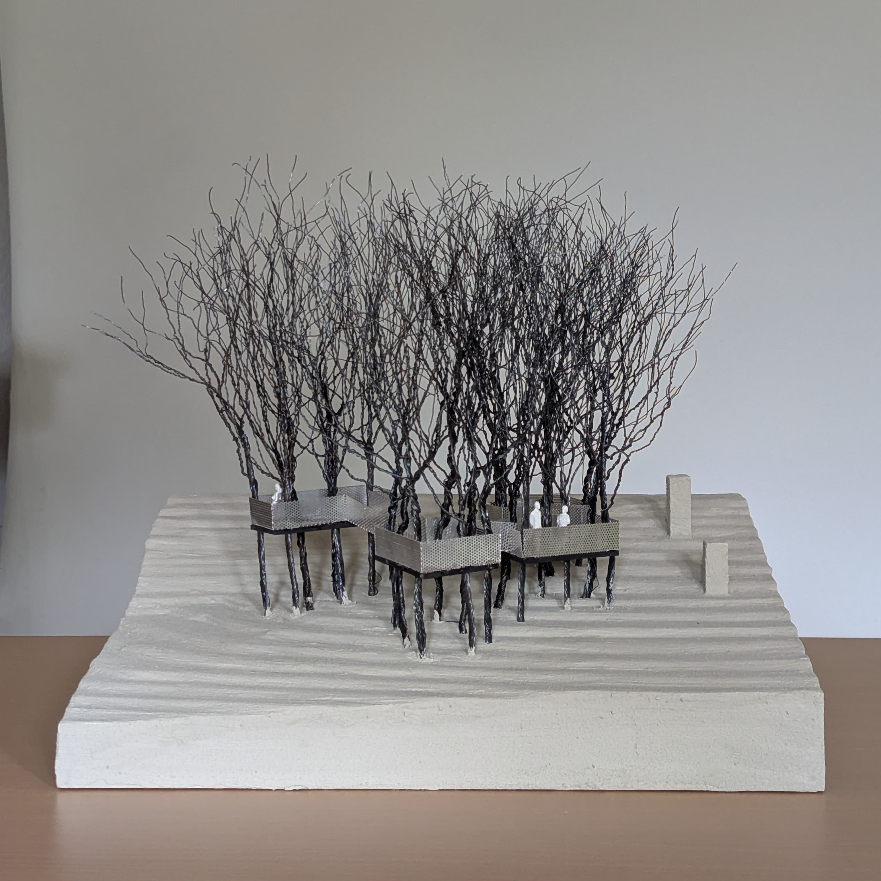 Am 29.07.2025 wurden die Ergebnisse des interdisziplinären Seminars Design Build Grow 4 vorgestellt. Das Seminar vereinte Studierende sowie ein Betreuungsteam aus den Bereichen Architektur, Landschaftsarchitektur und Bauingenieurwesen mit dem Ziel, lebende Bäume als tragende Struktur eines begehbaren Bauwerks zu nutzen. In Kooperation mit der Professur für Green Technologies in Landscape Architecture begleiteten Prof. Pierluigi D'Acunto und Jakob Kellnberger das Projekt vonseiten unserer Professur.